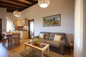 Pros: Pool area is beautiful and it’s very quiet. Views are lovely and you are set amongst olive trees and vines. Apartment was on the small side but very clean and pleasant. Cons: Apartment was advertised as 2 bedrooms when there was only 1. The owner indicated that the 2 bedrooms were the bedroom & the lounge - very disappointing. We worked with it but it could be a real problem for others! The bed Sofa was also very uncomfortable.. The drive to the location is a bit of a nightmare, particularly on a night - pitch black and hair pin bends was a bit stressful ! There is literally nothing nearby that you can walk to. If you are after a really peaceful relaxing holiday this is a great spot. Be prepared for a lot of driving though.