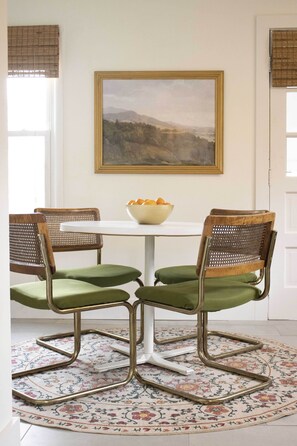 Our coffee bar is well stocked for all beverage lovers. We have a coffee machine for K-Cups, an Italian coffee maker (moka pot) for coffee grounds, and a tea kettle for loose leaf tea. Our Adult Beverage bar is home to a jigger, strainer, bottle opener, and stirring spoon. We also offer wine glasses, champagne flutes, cocktail glasses and Moscow mule mugs for our guests.