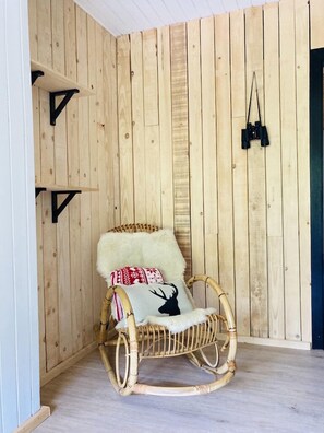 Der große Garten, der an die Wohnungen angrenzt, bietet Platz, um sich im Schaukelstuhl zu entspannen und eine schöne Aussicht auf die Berge zu genießen, während die Kinder auf dem Trampolin oder auf dem Spielplatz spielen. Der Fluss mit seinem unverwechselbaren Geräusch, der an den Garten angrenzt, vermittelt ein ultimatives Gefühl der Stille.