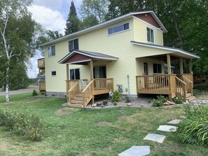 Come enjoy our newly rebuild, open concept, family heirloom year around. The Little Yellow Cabin has been a place where over 3 generations of family and friends have gathered, enjoying Mille Lacs Lake and the simple pace of Isle, MN. Park your car and get ready! If you need to drop your boat or watercraft, there are 2 public access points (pictures attached). Castles Resort is also across the street if you are interested in a fishing launch or renting a boat. When we are not on the lake, we are enjoying a campfire, relaxing on the porch, or uptown getting a coffee, massage, or hanging out at the local tavern or bowling alley. And if that's not enough, we ride bikes to the local state park or jump on the Soo Line trail and ride to Walkon for lunch. We have thoughtfully designed the cabin to accommodate all visitors. Our kitchen's pass-through window will connect the cook with the guests on the porch while still being able to enjoy your guest at the kitchen island. The Bunk room for all ages and the many entrances allowing everyone to have their own space. Jeanne's Porch is the best place to relax and enjoy the outdoors while being inside. Love sitting on the private upper deck watching lake life! We hope that your experience at the Little Yellow Cabin will leave lasting memories as it has for our family and friends. A couple more things for your stay: