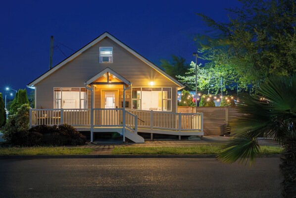 Mid-Mod Urban Hub, in the center of Port Angeles, is the perfect spot for a fun, vintage-inspired getaway at Olympic National Park. Though there's a bit of road noise, the private fenced backyard patio is a happy escape, complete with a fire pit, BBQ, corn hole, and outdoor projector. Inside, the retro vibe continues with a fully stocked kitchen, cozy couch, record player, kids' play area, and complimentary snacks, wine, and coffee—everything for a joyful stay!