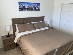The large bedrooms (both upstairs) are spacious and include a king bed and two queens. An optional air mattress is also available and can be used in the very large walk-in closet or in the living room.