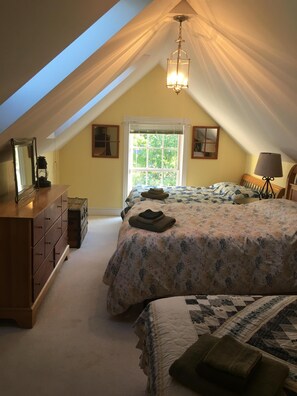 Well where do I start? So much to say. This is a sprawling house suited for large gatherings such as ours. We had 28 family members and adequately found space in the number of bedrooms on 3 floors. We also utilized the 2 bedrooms & bathroom available in the adjoining carriage house. There is one bedroom & bathroom on the first floor that sits next to the kitchen. If you have a large group that is the only first floor bathroom, and you must go through the bedroom to use it. Keep this in mind if you have a group where someone uses this and goes to bed early. The kitchen is relatively small for the size of the house, but well appointed with everything we needed. We enjoyed walking to the ice cream shop, coffee, shops nearby. Groceries are close by. It’s a short 9-10minute drive to the beach, and we spent quite a bit of time at Ocean Park, eating fabulous lobster rolls, waking the rocks and tide pools at the East Audobon Sanctuary. It was beautiful! There is a gorgeous fresian horse (the owners) in the driveway paddock (no joke) that the kids enjoyed giving carrots, apples, and petting each day he was there. It does smell a little ‘farm like’ which didn’t seem to be a problem for the handful of dairy farmers in our group, and was easily overlooked by the excitement of having such a neat horse close by. Setting proper expectations is key to enjoying the space. It’s perfect for large groups, layed back mornings on the porch or by the backyard pool with kids, that don’t expect the 5 star housekeeping of a resort - which worked perfectly for our group.