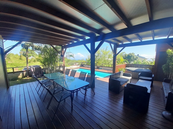 Maison très agréable à vivre situé dans un cadre au calme avec vue sur la mer. Tout y est. A 10 MN en voiture de Saint Paul et des plages. Les nombreux ventilateurs de la villa nous apportent la fraîcheur nécessaire. Hôte très sympathique. Je recommande +++