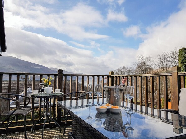 Bathroom: Bath With Shower Over, Heated Towel Rail, Toilet. Electric central heating, electricity, bed linen, towels and Wi-Fi included. . Enclosed back garden with firepit, BBQ and garden furniture. Hot tub for 6 (private). Private parking for 4 cars. No smoking.. Located on the north shore of Loch Tay in the peaceful picturesque village of Fearnan, minutes from Kenmore and close to the charming town of Aberfeldy where you will find a lovely selection of local shops, pubs and restaurants.