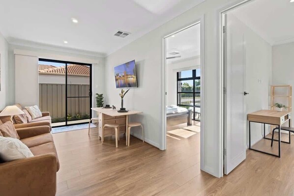 The unit sits at the front of a larger family home, and while you’ll have your own private entrance and fenced front yard, you’ll still enjoy the friendly feel of a residential neighbourhood. Henley Beach, local cafés, supermarkets and everyday conveniences are only minutes away, and the CBD and airport are a short drive. A comfortable and well-located stay for guests wanting coastal ease with city accessibility.