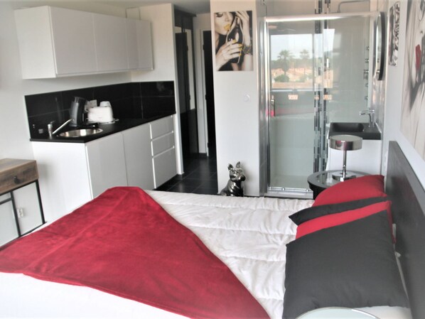 Monolocale per 2 persone, situato Résidence Port Vénus, con accesso gratuito alla piscina. Al 3° piano con ascensore, lato piscina. Soggiorno con letto da 140 cm. Angolo cottura con forno a microonde, caffettiera Senséo, tostapane e bollitore. Bagno con doccia e WC. Nessuna terrazza. Parcheggio privato n° R315.