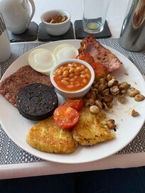 - Aufpreis für das nach Wunsch zubereitete Frühstück: ca. 12 GBP pro Person