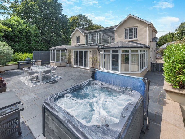 Step into the heart of the home, a superbly equipped kitchen; It’s a great social space. Pull up a stool at the island, maybe switch on the large Smart TV for music or entertainment, while the designated chef rustles up brunch or supper. Pull back the Bi-fold doors and let the sunshine in as you wander onto the patio terrace, perfect for lazy brunches or drinks under the stars. Channel your inner grill master with the outdoor kitchen, complete with a Super Green Egg barbecue and your very own pizza oven; because who doesn’t love a homemade pizza party? And don’t forget to soak away your cares in the hot tub, big enough for you and seven of your closest pals.