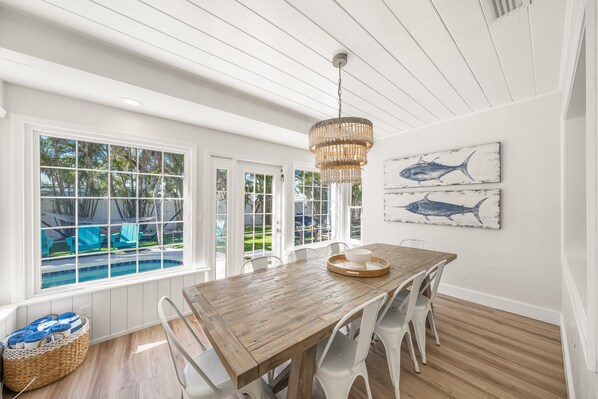 Great property with everything you need to head to the beach! Close to everything Anna Maria....very walkable area. Get out and about early in your trip to learn where everything is on the north end of the island so you can enjoy the cute little spots during your stay...quaint breakfast/coffee cafes, unique gift shops, etc. You don't need to worry with going elsewhere on the island, the best beaches are on the north end hands down. I wish this property had been right on the water, but that is hard to find on AMI. The walk to the beach is just enough to knock the sand off of your feet! Highly recommend. Sleeps 8 easily and could sleep 10 comfortably as the non-king bedroom has a queen bed and a bunk bed with a full on the bottom and twin on the top and a murphy bed on the bottom. Had I known this, I would have asked my sisters to join us! The back yard area with the perfect small pool and outdoor entertaining area makes this place! Hosts are very responsive to concerns/questions.