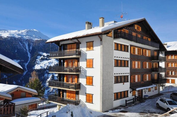 Geräumige 2,5-Zimmer-Wohnung, nach Südwesten ausgerichtet, mit 2 großen Balkonen, ideal für 2 bis 4 Personen. Herrliche Aussicht auf die Kaiserkrone mit dem Matterhorn. Am Dorfeingang gelegen, in der Nähe des kostenlosen Pendelbusses. Haustiere sind nicht erlaubt.Eingangshalle mit Einbauschränken. Gemütliches Wohnzimmer mit Kleiderschrank mit 1 klappbaren Doppelbett (160x200) und 1 Einzelbett (90x200) und integriertem Esstisch. 2 Badezimmer: jedes mit Badewanne, Toilette und Waschbecken. Offene Küche mit Geschirrspüler und großem Kühlschrank (mit Gefrierfach). 1 großes Schlafzimmer mit zwei nebeneinander stehenden Einzelbetten und Kleiderschränken. Badezimmer mit Badewanne, WC und Waschbecken.Parkplätze für das Gebäude vor dem Gebäude reserviert, keine zugewiesenen Parkplätze, nach dem Prinzip „first come, first served“.Im 3. Stock gelegen, Aufzug, Skiraum und gemeinsame Waschküche in der Residenz. -- -- -- Endgültige Reinigung: Die normale Endreinigung ist im Mietpreis inbegriffen (siehe allgemeine Bedingungen) -- -- Küchenwäsche vorhanden: Wäschepauschale für Bettwäsche, Bade- und Küchentücher (falls gewünscht) : Chf 45.00 pro Person -- -- Badwäsche vorhanden: Wäschepauschale für Bettwäsche, Bade- und Küchentücher (falls gewünscht) : Chf 45.00 pro Person -- -- Parking: Gemäss Ausschreibung -- -- Kaution: CHF 300.00 -- -- Annullierungsversicherung: Wir empfehlen, eine Rücktrittsversicherung abzuschliessen falls über keine solche Verfügen. -- -- Verwaltungskosten: Buchungsgebühren Chf 50.- -- -- Haustiere : Gemäss Ausschreibung -- -- Kurtaxe: Gemäss Mietvertrag --