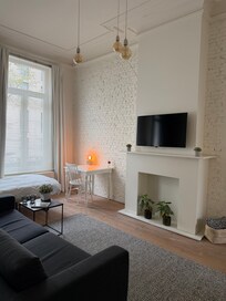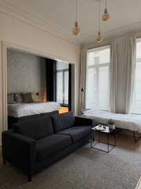 Dank der ausgezeichneten Lage (Altstadt) ist diese Pension im luxuriösen Stil zu Fuß nur 10 Minuten entfernt von: Nationalestraat (Straße) und Grote Markt. Ebenfalls höchstens 5 Minuten entfernt: ModeMuseum (MoMu) und Flohmarkt von Antwerpen. Antwerpen (ZWE-Bahnhof Antwerpen Centraal) ist 21 Gehminuten und Antwerpen Hauptbahnhof 21 Gehminuten entfernt.
