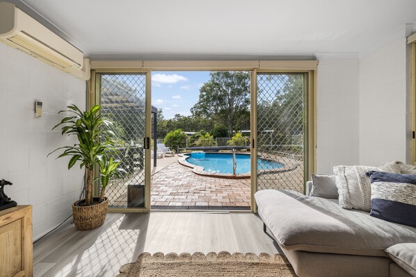 The bedrooms offer a tranquil retreat. The main bedroom features a King bed with Air Conditioning , while bedrooms 2 and 3 provides a queen bed and Bedroom 4 provides 3 single beds. We don't supply linen, all the beds have mattress protector, pillow case, pillow, quilt and quilt cover. You will need to bring your own sheets and towels, bath mat, tea towels You will also need to bring your own washing powder, kitchen detergent, soap and toilet paper, etc. The Main bedroom and the living area are fitted with reverse cycle air conditioning for your comfort.