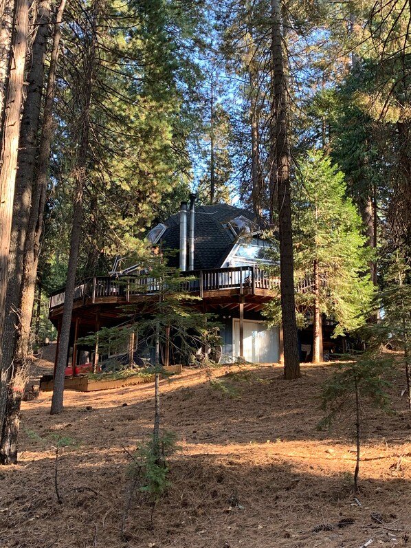 We loved our stay at Maria’s Rancho Relaxo. Maria was very accommodating and quick to respond to our questions and requests. The cabin with its unique design has been recently remodeled, so everything is new, clean and in good working order. As fans of Scandinavian design, we appreciate the light and modern interiors. The kitchen is well-stocked and we found everything we needed to cook our own meals. The cabin is nicely decorated making for a comfortable stay. We loved the special touch of the holiday decorations, which made it very homey and put us in the festive spirit. The upstairs couch is super comfy and the acoustics when playing music through the downstairs Echo while sitting upstairs under the domed roof are a trip - makes you feel you are in an opera house. The cabin is located at the edge of town. During the pre-Christmas week of our stay, it was quiet and peaceful. From the cabin you’ll have quick access to the forest and within 20 to 30 minutes of walking you are entering Big Trees State Park. Thank you Maria for a a wonderful stay at Rancho Relaxo. I am sure we’ll be back!