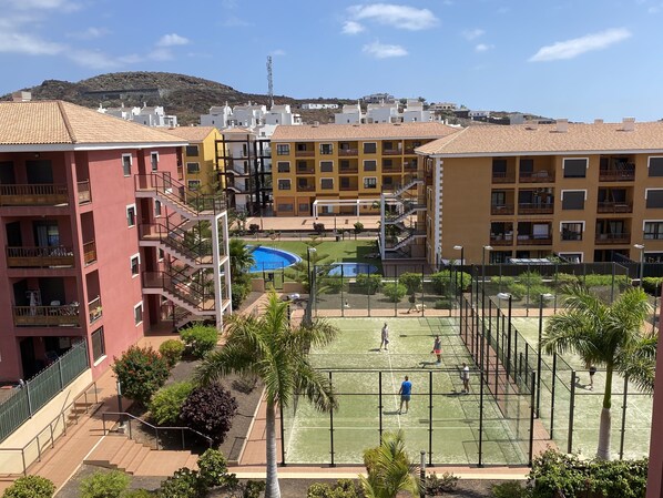 EL Mocan, 1 bedroom 65 qm apartment, kitchen and living room, bath room, balcony, including parking sport very close to elevators - renovated 2018. The sofa bed in the living room is very confortable to sleep, so maximum occupancy is 4 people (2 adults/2 children). El Mocan is a very safe area with 2 large swimming pools and 2 padel tennis courts. Within the complex there is a bar, an italian restaurant, a restaurant with fresh health food and a supermarket for the daily needs Palm Mar is the perfect place to explore the island as it is easy to go in and out. Also it is very close to Los Cristianos and Las Americas (8 km with the car). There you can find the most tourist attractions and nightlife opportunities If you want to spend all day at the same beach and not use the car Palm Mar might not be the right spot for you as the beach is kept natural but having a bar and a beach club. The positve side is that beach is not crowded like the prominent beaches on Tenerife. so you can spend a few hours on the beach and enjoy the sunset. Famous beaches like Las Vistas, Duque, Fanabe, El Medano are only a 10-15 minutes drive away. Tejde Ntl. Park, Anaga are 40 minutes drive. Siam Park and Aqualand less then 10 minutes. We can offer also pick up and bring to the airport for 20 € (maximum 3 people) Rental Lizenz: RGE/475115/2021