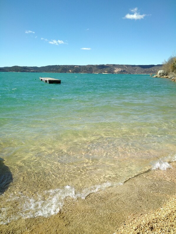 Dieses Ferienhaus liegt am Ufer und ist damit nur 2,8 km von Verdon entfernt. Im Umkreis von 15 km befinden sich zudem: Prähistorisches Museum und Lac de Sainte-Croix. Ebenfalls in einem Umkreis von 15 km: Museum der Vorgeschichte der Gorges du Verdon und Schloss von Allemagne.