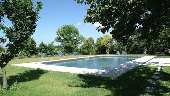 Der Pool ist 6 Meter breit, 12 Meter lang, 1,2 Meter tief und 1,5 Meter tief. Das Gebiet ist mit Liegestühlen ausgestattet. Vom Swimmingpool aus genießen Sie einen schönen Blick auf die toskanische Landschaft und die Hügel. Sie teilen den Pool mit den anderen Gästen des Hotels. Der Pool ist von Anfang Juni bis Ende September geöffnet.