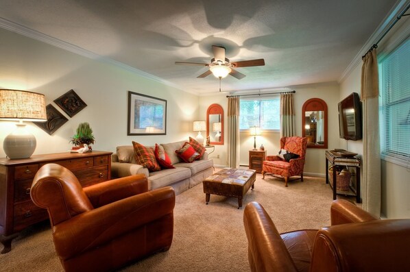 Die Master Suite verfügt über ein Doppelbett und einem herrlichen, zwei Badezimmer mit Dusche für einen Spa-Erlebnis. Schlafzimmer zwei und drei teilen sich ein großes, komplett renovierte Badezimmer mit Fliesenböden und Granit-Waschtisch. Schlafzimmer zwei hat ein Doppelbett und ein Schlafzimmer drei hat zwei Einzelbetten bietet eine große Auswahl an Schlafgelegenheiten. Weitere Features sind ein 50 "HDTV im Wohnzimmer, TV in jedem Schlafzimmer und eine Feuerstelle aus für den späten Abend s'mores oder bei einem Glas Wein unter den Sternen.