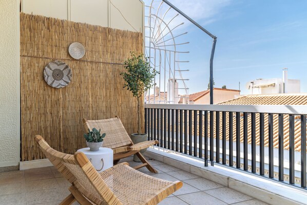 - Balkon zur Vorderseite des Gebäudes mit Blick auf die Akropolis