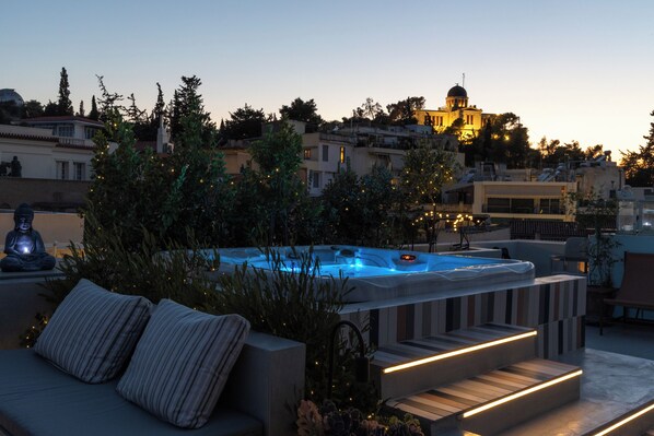 To make your stay even more special, you can also book our private rooftop hot tub experience, the perfect way to unwind while enjoying breathtaking views of the city skyline.