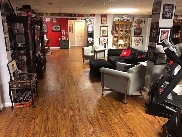 Wir wohnen im Obergeschoss auf dem Grundstück. Das Haus ist jedoch so eingerichtet, dass Sie den Keller der Dawg-Höhle betreten können, ohne den Rest des Hauses zu betreten.