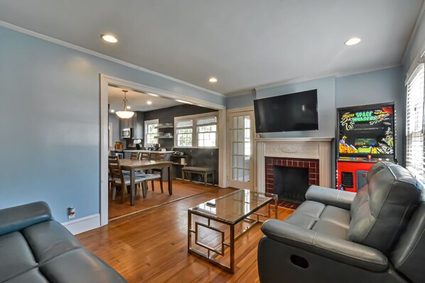 We had a fabulous time at The Audrey! The location is perfect. The house is easy to find and within walking distance of quite a few good restaurants and Atlantic Station. There was a free bus that took us into Midtown. The house itself was lovely and had everything we could possibly need. The beds were comfortable and warm! My husband and daughter loved the arcade games. Thank You!