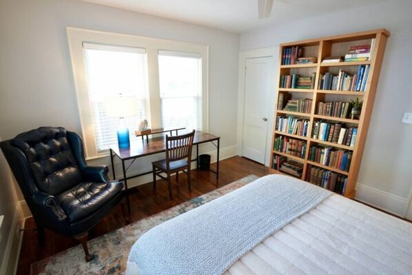 You'll be smarter just walking in the door! OK, maybe not, but you will love this house. Built in the 30's, but completely renovated in 2014. The house is stylish, with fresh paint, new blinds, new beds, linens and towels. But you're also surrounded by old books and traditional touches. Each bedroom has a desk and a comfortable chair for personal time. The cozy living room has a gas fireplace and a big screen TV. This is the best of old and new, in an amazing location. Welcome to The Library. The space The house has four bedrooms (two upstairs and two downstairs), and two full bathrooms (one up and one down). One bedroom has a king bed, and three bedrooms have a queen bed. Each bedroom has a desk for work and a comfortable chair for relaxing and reading. There is a front porch with deep seating, and a back deck with table and chairs for outdoor dining.