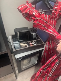 Property Issues: Our door wouldn’t deadbolt, which is a safety issue with younger kids. the door to the bathroom wouldn’t close. There were no hooks to hang towels or clothes. The water pressure was awful and the water was only slightly hot, verging on warm. The pillows and sheets were not comfortable, very cheap and scratchy. My biggest complaint is the closet, the rod to hang your clothes was over the refrigerator. If I hung a dress it was laying on top of the fridge bunched up or I had to drape it over the front and it was partially lying on the floor because the rod was only about 4’ off the ground. I think even a longer shirt would do the same. The nook for the closet was full height so it looks like they just cheaped out on the closet system. For the price all you are really paying for is a location and a clean room.