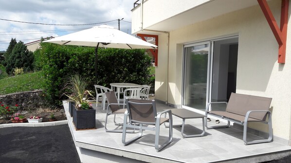 Die FeWo liegt an einem Hang mit herrlichem Blick auf den Fluß.