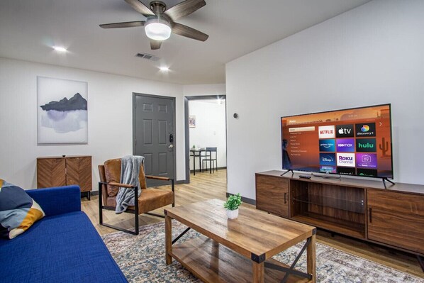 ✔Spacious queen bed ✔Queen pull out sofa ✔Free parking ✔Goog.le Fiber high speed internet ✔Fully stocked kitchen with all utensils needed to cook your favorite meal