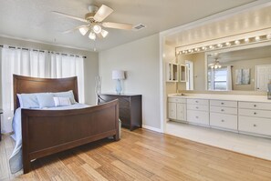 Die Hauptebene des Hauses verfügt über 2 Schlafzimmer und ein komplettes Badezimmer. Die Master Suite erwartet Sie auf einer eigenen Etage mit einem Queensize-Bett und einem eigenen Balkon. Entspannen Sie sich morgens auf dem Balkon bei einer frisch gebrühten Tasse Kaffee und starten Sie in einen unvergesslichen Tag! Die Küche ist mit einem Keurig und einer Auswahl an Kaffee ausgestattet, die Sie genießen können!