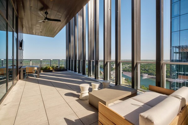 - Rooftop / 33rd Floor pool deck with cabanas, fire pit, fireplace and entertainment area. Enjoy some of the best views in Downtown Austin.