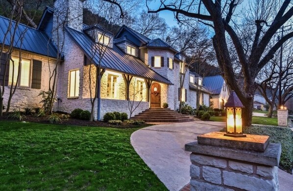 Französisches Bauernhaus am Lake Austin! Dieses schöne Haus bietet einen kurzen Fußweg zum privaten Bootsanleger am Lake Austin mit einer Partyterrasse mit Loungemöbeln, rostfreiem Grill, Hängematte, Kajaks und Gasfeuer! Unsere 5000 qm. Haus bietet 5 Schlafzimmer / 3. 5 Bäder und separate Gästezimmer. Modernes Bauernhaus-Interieur-Design & Einrichtung im gesamten Gebäude: rustikale Longleaf Pine-Böden, Theaterraum, 2 Gaskamine, formelles Wohnen, Spielzimmer / Spielzimmer, formelles Essen, Babyzimmer mit Kinderbett / Kleinkindbett und Außenterrasse mit rostfreiem Grill und Essbereich für 10. Dieses schöne Haus liegt in einer der prestigeträchtigsten Straßen in Austin und ist eine einfache Uberfahrt von 25 USD oder 15 Autominuten vom Nachtleben der Innenstadt entfernt. Perfekt für eine große Familie unterhaltsam, Urlaub oder Spaß am See AUSTIN!