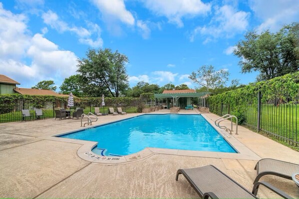 The community pool is literally across the street — ideal for kiddos or a mid-day cool-off.