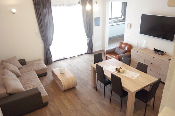 Die 110 qm große Wohnung ist ganzjährig für Ferien geeignet und besteht aus einem großen Wohnbereich mit einem Schlafsofa (1P und 1/2), einer großen Küche mit allen Geräten, 1 Schlafzimmer mit Doppelbett und en-suite Badezimmer, 1 Schlafzimmer mit Doppelbett und 1 Schlafzimmer mit Etagenbett, 1 Bad, Hauswirtschaftsraum, Heizsystem mit Thermo-Kamin, große Panoramaterrasse, die auf eine atemberaubende Landschaft öffnet: auf der einen Seite die Eremitage der Madonna delle Grazie und auf der anderen einen malerischen Blick auf das Meer von Avola und die gesamte Südküste der Provinz Syrakus.