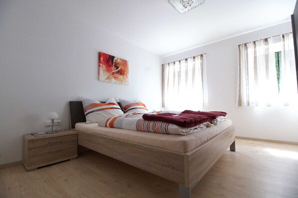 Das Apartment ist 70m² groß und befindet sich im 1. Stock über dem Erdgeschoß und bietet Platz für 1-4 Personen. und ist mit einer Außenstiege durch einen eigenen Eingang zu erreichen. Die Wohnküche ist komplett eingerichtet und mit einem Ceranofen, Kühlschrank und Gefrierfach ausgestattet. Eine gemütliche Sitzecke und ein Fernseher laden zum Wohlfühlen und entspannen ein. Alle Zimmer und Nebenräume sind mit einer Fußbodenheizung ausgestattet. Bettwäsche, Bade- , Hand- und Geschirrtücher sind im Preis inkludiert.