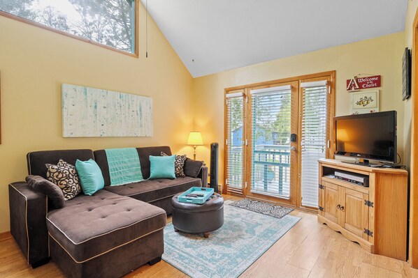 Additional sleeping space: Pull-out sofa couch (King) in living room, ceiling fan