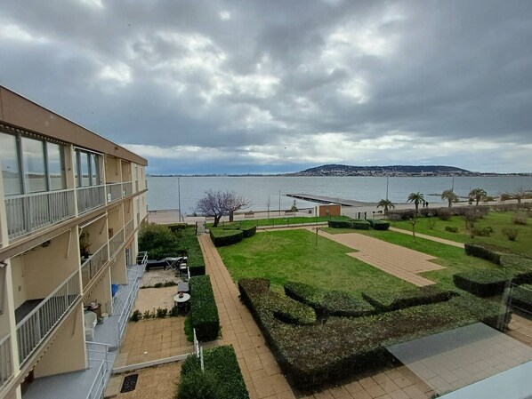 In der Residenz Sévigné 1 befindet sich dieses gemütliche Ein-Zimmer-Apartment im 2. Stock mit Aufzug. Es bietet Blick auf die Lagune von Thau und liegt nur wenige Schritte von den Thermalbädern entfernt. Das Apartment besteht aus einem Wohnzimmer mit Schlafcouch, einer voll ausgestatteten Küchenzeile, einem Badezimmer mit WC, einem Schlafbereich mit Doppelbett (140 cm), einem Kleiderschrank und einer verglasten Loggia. Zur Ausstattung gehören: Kühlschrank mit Gefrierfach, Elektroherd, Mikrowelle, Minibackofen, Kaffeemaschine, Toaster, Wasserkocher, Mixer, passendes Geschirr und Besteck, Fernseher, Bügeleisen und Bügelbrett, Waschmaschine und Klimaanlage. Geeignet für 2 Personen. Der Stromverbrauch wird separat abgerechnet (zum Tarif am Anreisetag). Das Apartment ist rauchfrei und nicht barrierefrei. Haustiere sind erlaubt. Ausrichtung: Südosten.