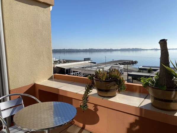 Residenz LE VERSEAU. Wunderschönes Apartment mit einem Schlafzimmer und einer Fläche von ca. 30 m² sowie einer Terrasse mit atemberaubendem Blick auf die Lagune von Thau. Diese klimatisierte und sehr helle Unterkunft besteht aus einem Schlafzimmer mit einem Doppelbett (160x200), einem Wohnzimmer, einem ausgestatteten Küchenbereich und einem Badezimmer mit ebenerdiger Dusche und separater Toilette.