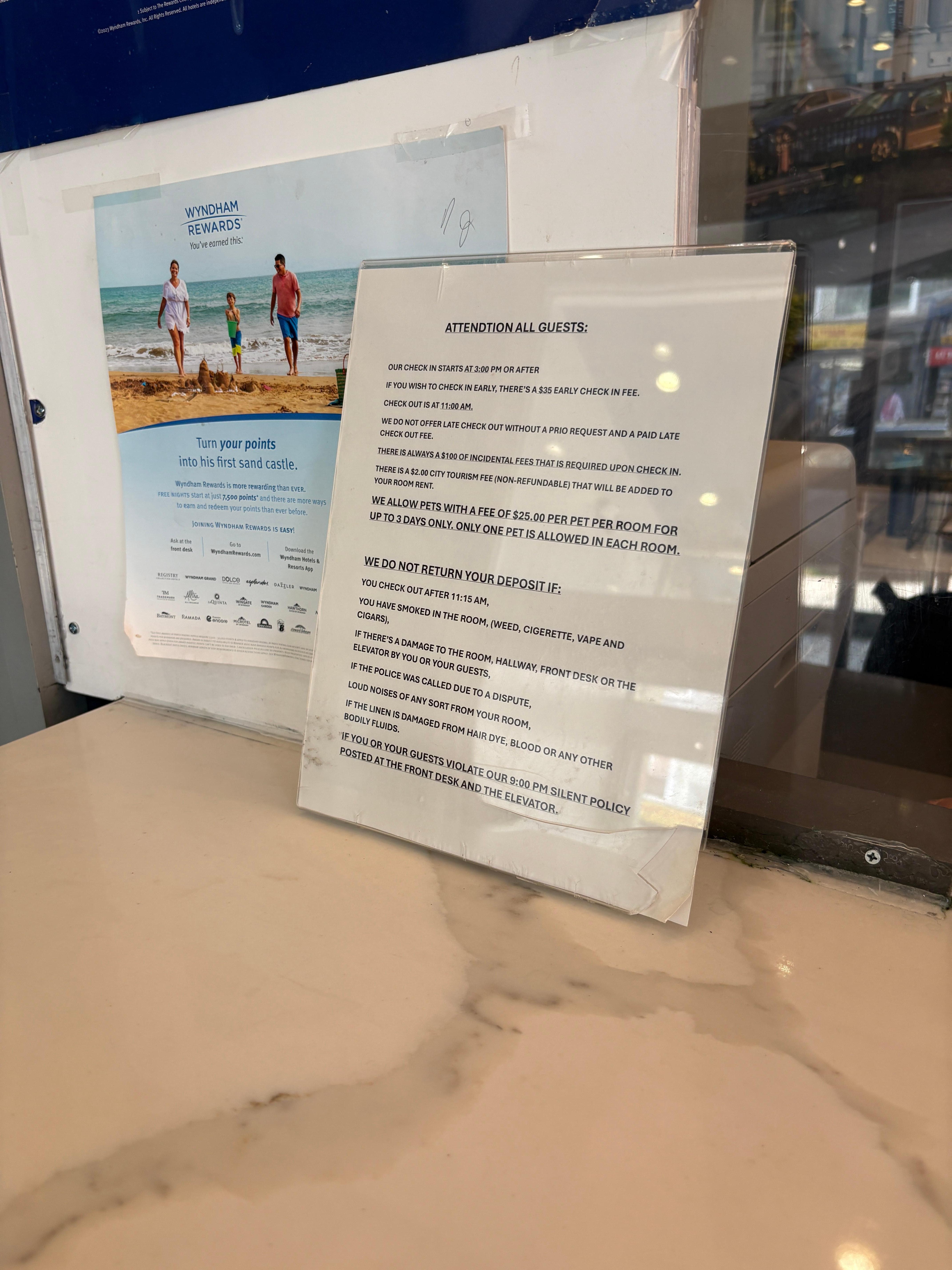 2nd the front desk host was rude and unprofessional my husband and I was calling down multiple times and he didn’t answer bt when my husband went down he had his feet up no shoes on the desk doing nothing our room didn’t have any towels n our and the neighborhood was very uneasy people everywhere I just didn’t feel safe the hotel had a no tolerance rule bt when i complained about noise nothing happened I just wouldn’t never stay here again or suggest it especially anyone with kids