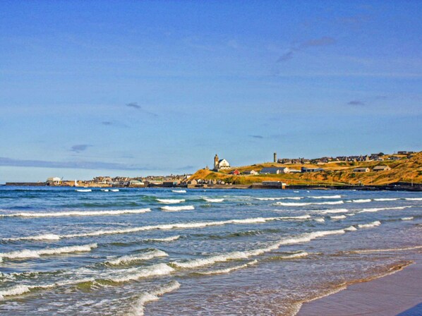 Shower Room: Cubicle Shower, Toilet. Gas central heating, electricity, bed linen, towels and Wi-Fi included. Private parking for 1 car. No smoking.. 2-bedroom self-catering apartment for holiday rental in Banff in Aberdeenshire. Views over the sea and beach toward Macduff. The Banffshire coast with its numerous long sandy beaches is a great place for family holidays, perfect for outdoor activities or for somewhere to just relax and unwind. The apartment sits on the sea front of Banff and offers spectacular views of the beach, Moray Firth, Banff Bay and towards Macduff.