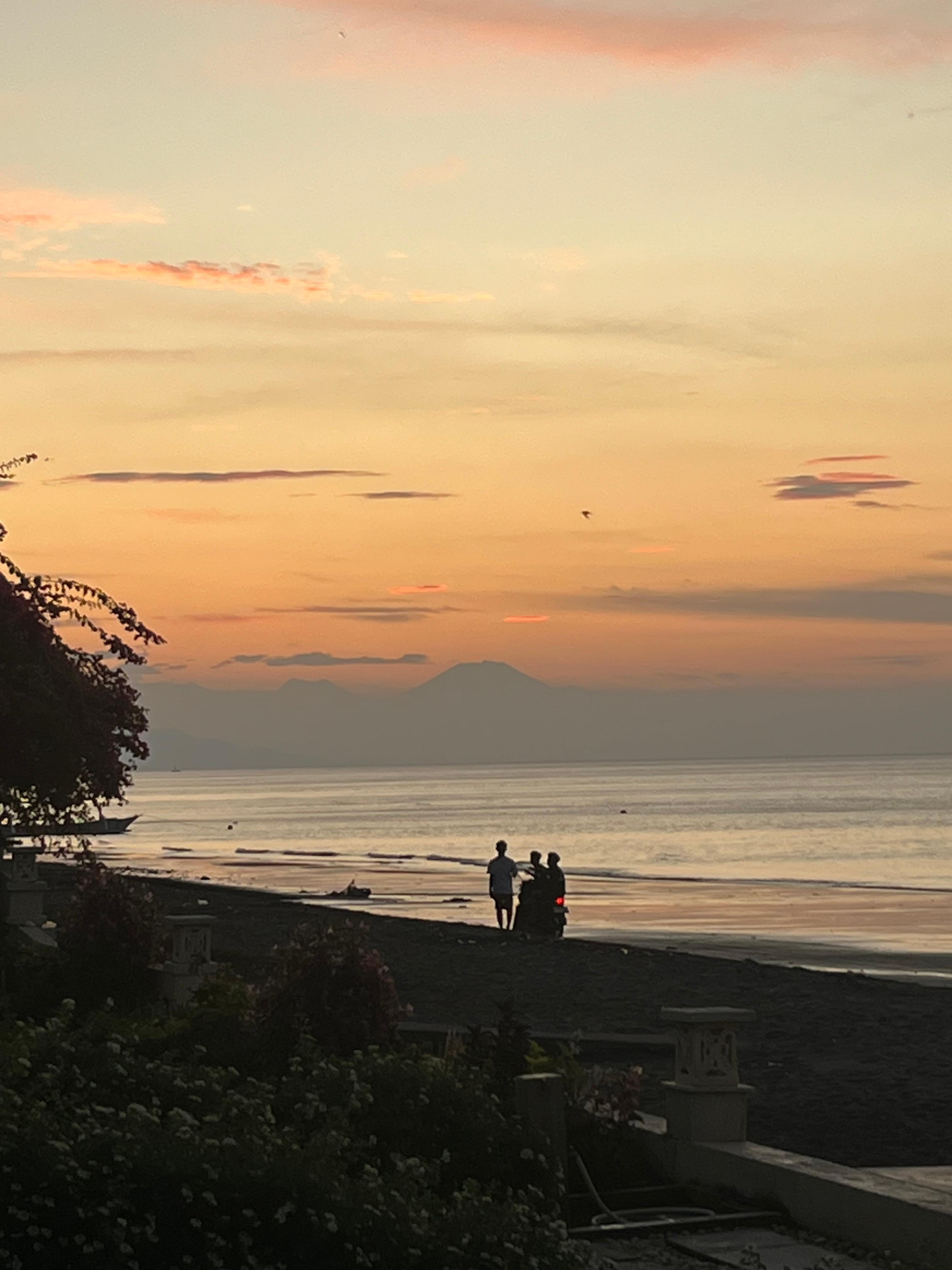 Der Pool ist von einer Terrasse mit zwei balinesischen Strohdach-Schirmtischen und Liegestühlen mit guter Matratze umgeben. Es gibt viele Poolhandtücher zur Verfügung. Der Bale Benong ist der ultimative Entspannungsbereich mit Blick auf das Meer und weichen Kissen.