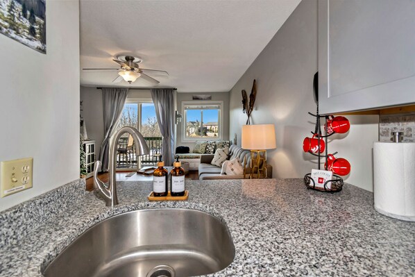 A fun weekend playing in the snow. Condo is super clean and beautifully decorated. View of the ski slopes from balcony was amazing. Walking distance to restaurant, a brewery, kids sledding hill, and Fred's Mercantile. We will definitely stay again.