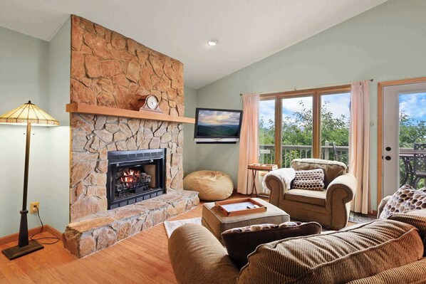 This single-family home spans 1,850 sq ft across two levels, giving everyone plenty of room to spread out while still enjoying time together. The open-plan living, dining, and kitchen area is perfect for sharing meals, movie nights, or simply relaxing in the crisp mountain air after a day of fall adventures.