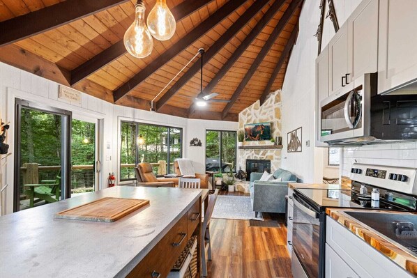 Diese Ferienhütte in Banner Elk bietet eine Küche und einen Patio