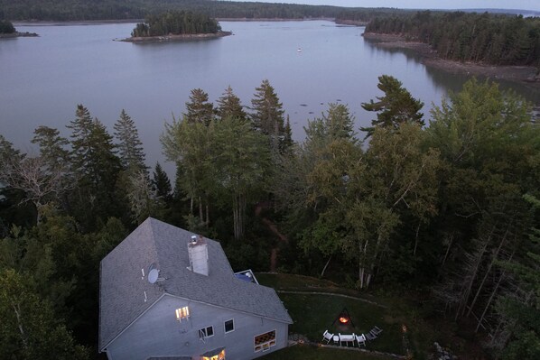 Das Haus befindet sich in einer privaten Gezeitenbucht namens Kilkenny Cove, die über die Mount Desert Narrows mit dem Atlantik verbunden ist. Es bietet erstaunliche und landschaftlich reizvolle Möglichkeiten zum Kajakfahren, sodass Sie unzählige Inseln und Buchten erkunden können. Die Gezeitenveränderungen sind dramatisch und bieten mit jeder Flut eine andere Landschaft. Eine kleine Insel ist direkt in der Ferne vom Haus und Gastgeber und Adler nisten. Wir sehen regelmäßig Weißkopfseeadler vom Ufer aus. Das Wasser befindet sich etwa 100 Meter vom Haus entfernt. Wir haben absichtlich viele Bäume in und um das Grundstück stehen gelassen, um den Blick auf das Wasser mit der Privatsphäre und dem Schatten der Bäume in Einklang zu bringen. Wir haben viel Fichte und Birke. Es ist ein 30-Sekunden-Spaziergang durch den Wald, um das Ufer zu erreichen. Es gibt eine kleine Böschung, die zum Wasser führt, wo Sie Kajaks setzen können. Zwei Einzelkajaks und ein größeres Tandem-Seekajak mit Seitenruder sind im Mietpreis enthalten. Es gibt auch andere Orte auf der Halbinsel, an denen Sie verschiedene Umgebungen und Ausblicke genießen können. Sie können direkt vom felsigen Strand schwimmen und bei Flut von den Granitleisten in den Ozean springen. In Maine ist das Wasser kalt, aber an einem heißen Tag, warum nicht? Ich habe auch zwei Mountainbikes in der Garage, um die private Spur zu genießen.