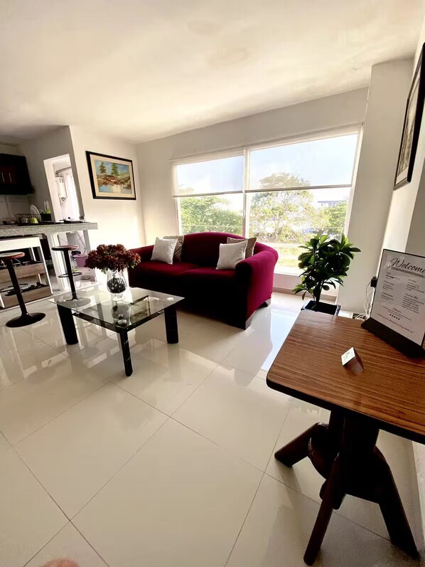 Experience this great City while staying at our pristine apt, located in a beautiful and safe Northern section of Town, where you are within walking distance to the modern upscale Viva shopping mall. Here you’ll find mainstream stores, movie theatre, fitness center and restaurants. Other malls such as Buenavista are just 5 min away by car.Building