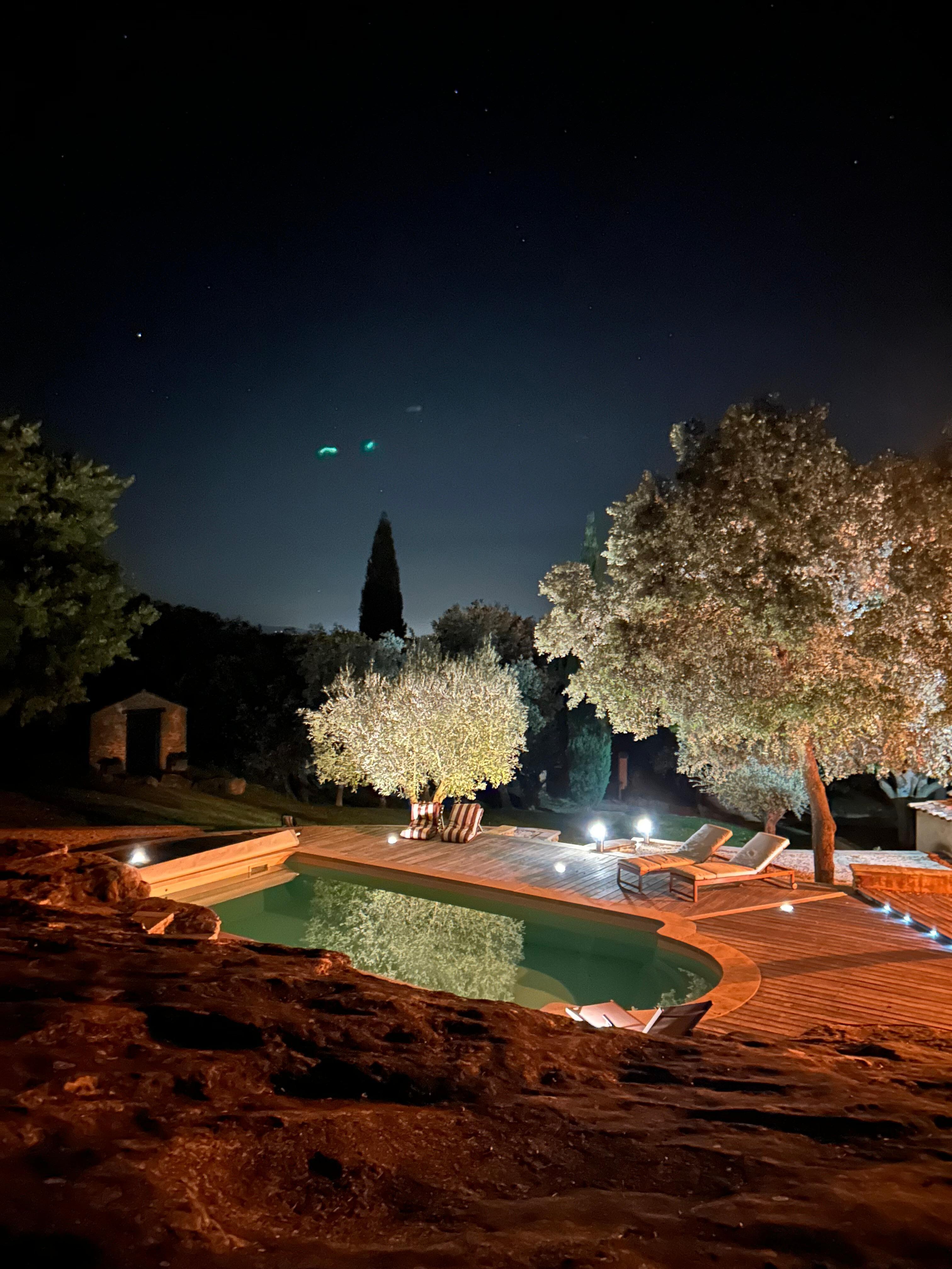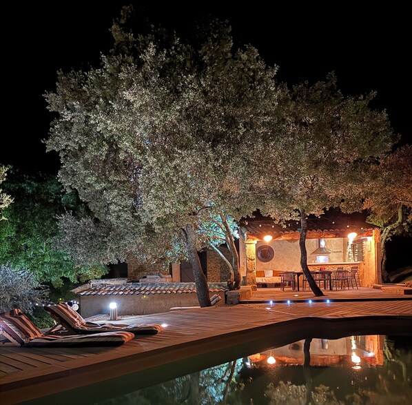 Lassen Sie sich vom Klang der Zikaden, dem Duft von Lavendel und Rosmarin in einem bezaubernden Anwesen wiegen: Der schattige Park und der wunderschöne Olivenhain werden Sie für süße Momente des Lesens begrüßen. Der Poolbereich zum Baden an heißen provenzalischen Tagen und für Ihre Abende mit der Familie oder mit Freunden.