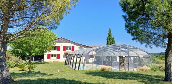 Privates Schwimmbad der Größe 10 x 5 m, von Mai bis September auf 28 ° C beheizt. Es hat einen hohen Schutz, der es Ihnen ermöglicht, unter allen Bedingungen zu schwimmen.