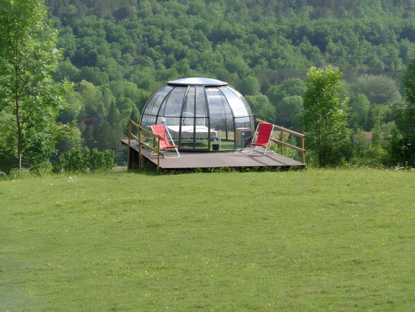 Fotogalerie von Kabine 'Nuit Insolite En Dôme Vitré' mit Bergblick, privater Terrasse und Gemeinschaftsgarten